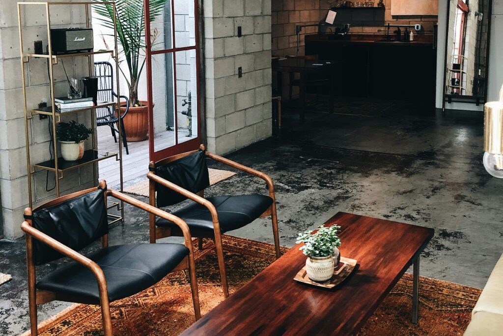 Leather is a key material in this design style. Layering with textiles like handwoven rugs, macramé wall hangings, and fringed blankets keeps the space from feeling too harsh while bringing a vintage aesthetic to the space.