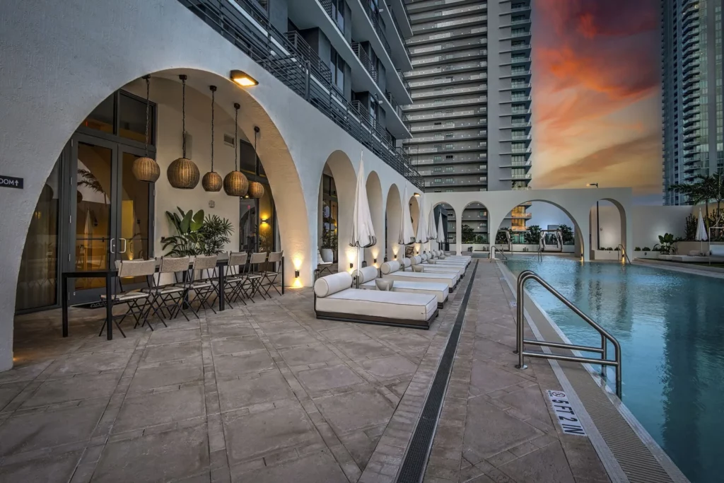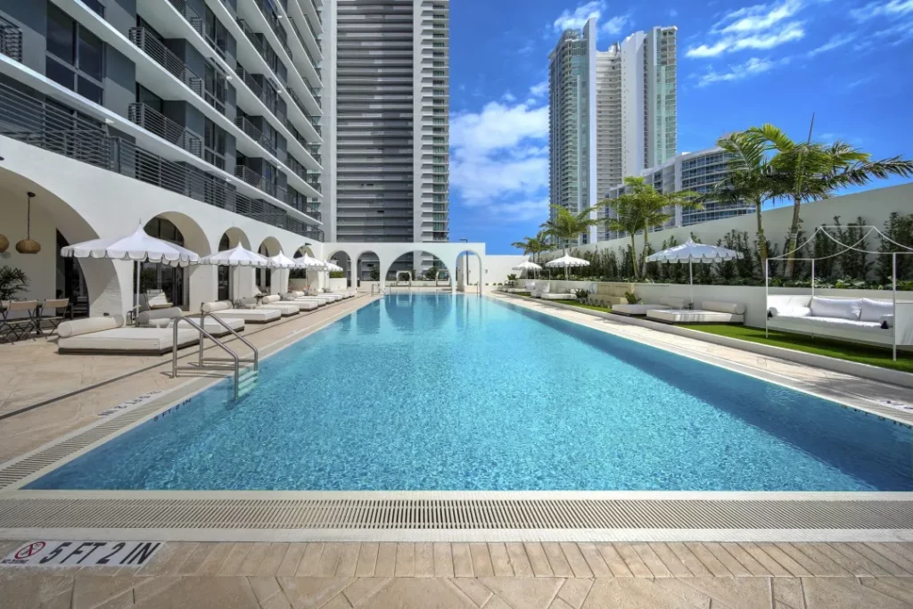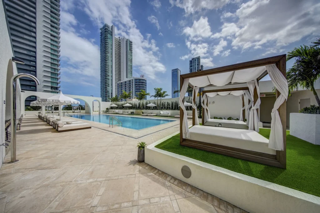Located in the heart of Miami’s vibrant Edgewater neighborhood, Metro Edgewater offers high-end residences perfect for those desiring an elevated living experience. The apartments feature modern designs with custom cabinetry, quartz countertops, and floor-to-ceiling windows providing breathtaking views of Biscayne Bay and downtown Miami. The highlight is its breathtaking pool, surrounded by poolside cabanas, providing residents with a serene oasis to relax and unwind.