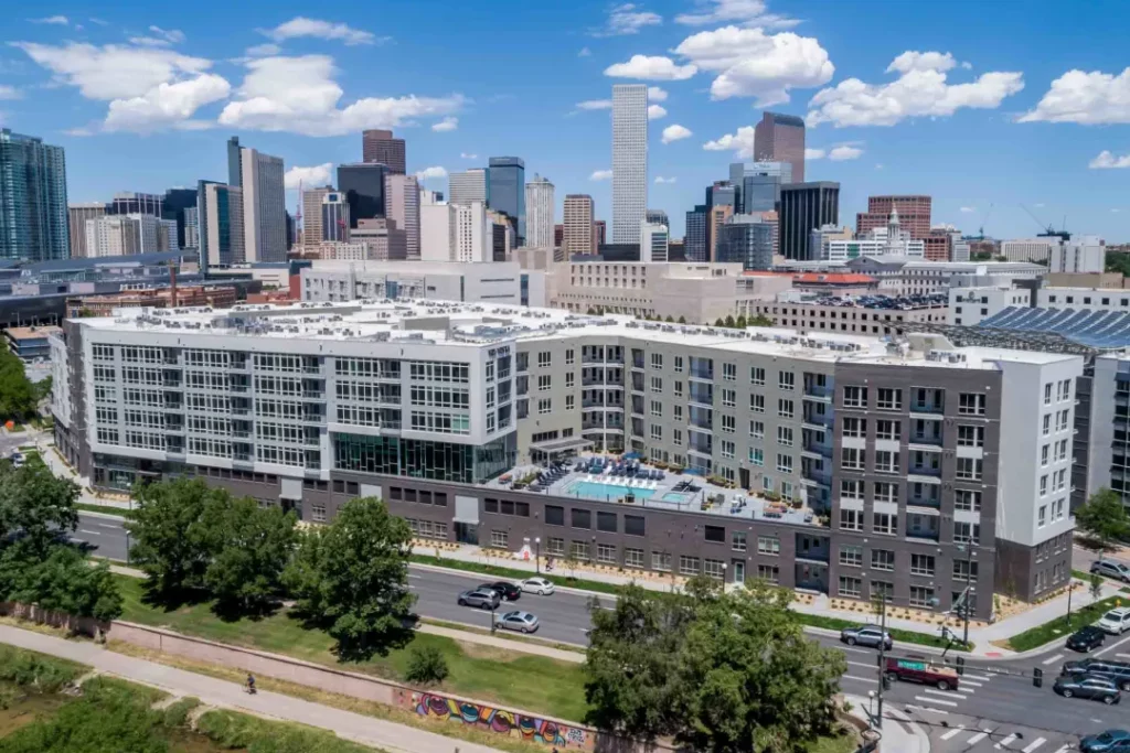 TriVista on Speer is located in Denver’s Golden Triangle Creative District. The complex features a stunning pool and spa with a lounge area, perfect for relaxation. Residents can also enjoy amenities such as a two-story fitness center, a rooftop deck with mountain views, and direct access to the Cherry Creek Bike Path. TriVista on Speer combines modern living with the convenience of being within walking distance of Denver’s best artistic and historical attractions.